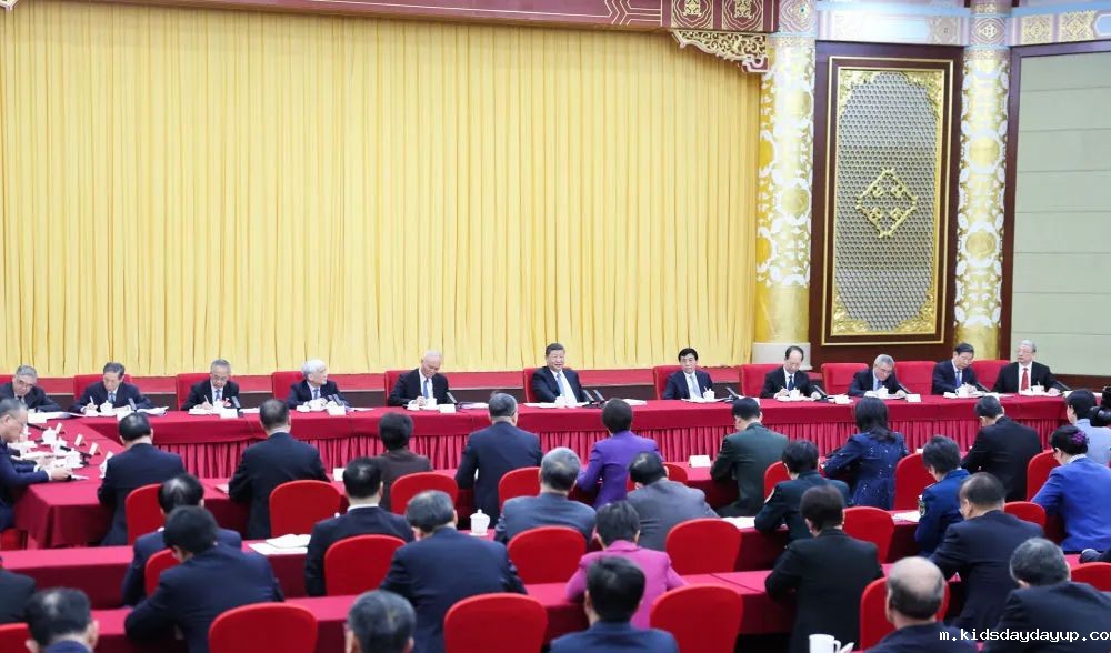 在听取大家发言后,习近平发表重要讲话。他表示,很高兴同大家一起讨论,听取意见建议。他代表中共中央,向在座各位委员,并向广大民盟、民进成员和教育界人士,向广大政协委员,致以诚挚问候。