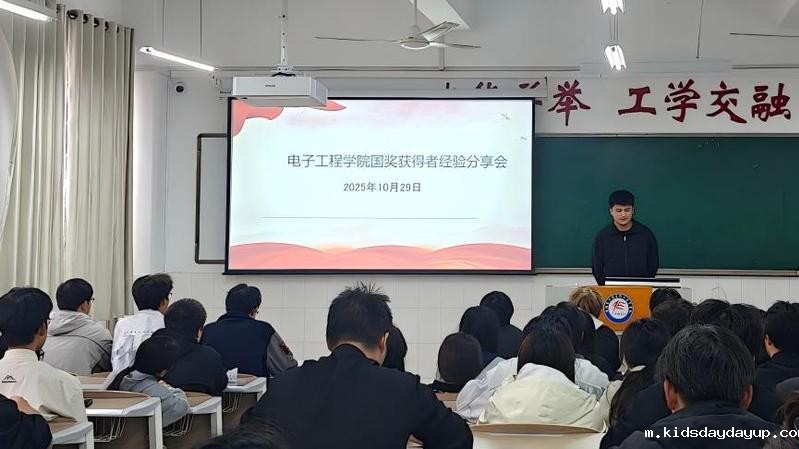 本网讯 为充分发挥优秀学子的榜样示范作用,激发全院学生的学习动力与进取精神,10月29日下午,电子工程学院学生会学习部于2301和2303教室举办“榜样领航,逐梦青春”国奖获得者经验分享交流会。集成242班张其好、新能源242班葛立政两位国奖获得者倾情分享,近180名学子到场参加。