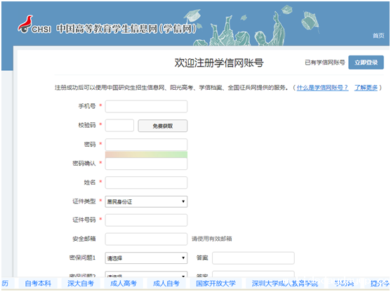 (请牢记自己实名注册的用户名和密码,方便以后进行图像核对和学历查询等。)