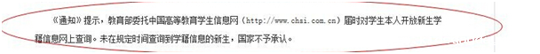 备注:1、新生必须要上网进行查询,没有查询的学生国家教育部不承认该学生的学籍。
