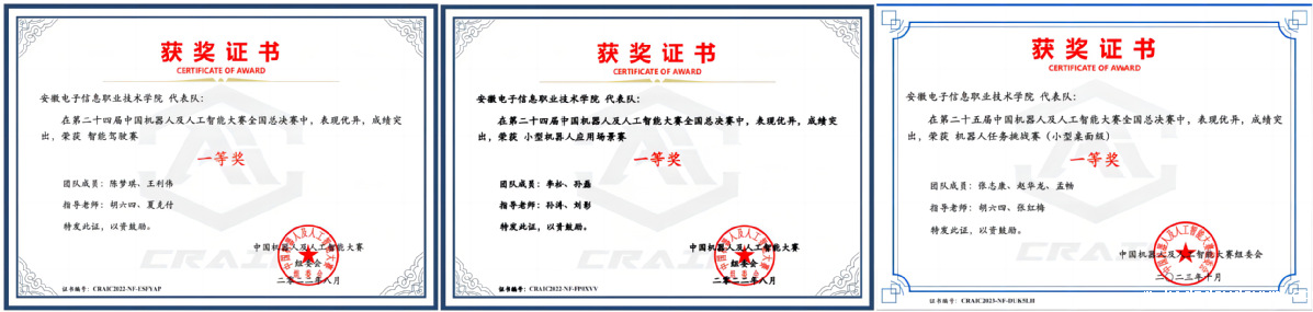 2023年第二十五届中国机器人及人工智能大赛—机器人任务挑战赛全国一等奖1项,二、三等奖各1项